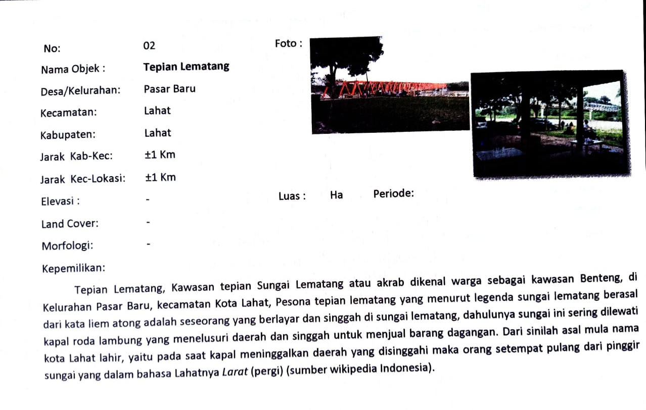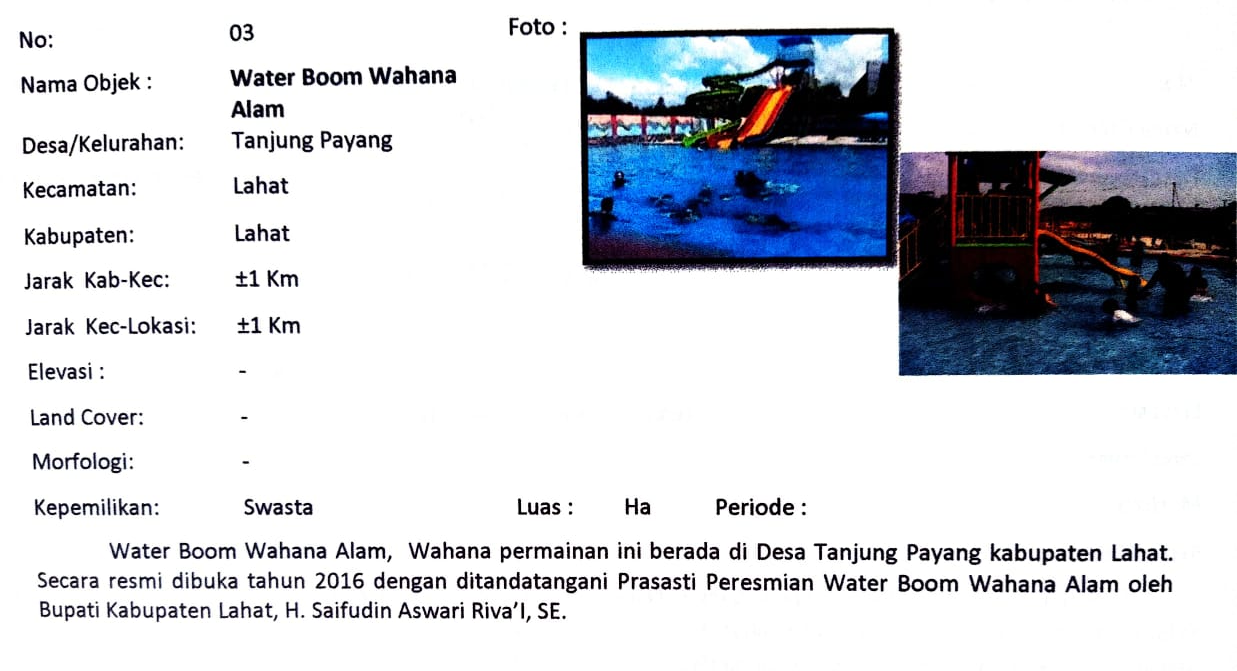 Sumber : Dinas Pariwisata Kabupaten Lahat tahun 2018