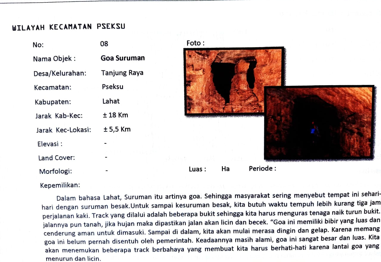 Cuhup 9 Panggung, Goa Suruman, Curup Tinggi Suban, Goa Bukit Sempiang Tiang |